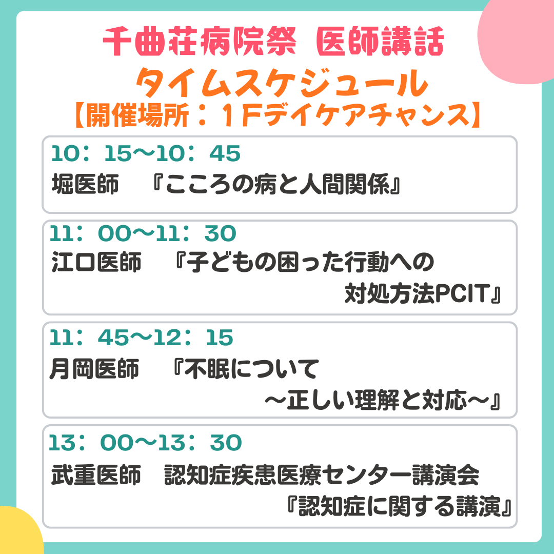 11月30日(日)第19回千曲荘病院祭 医師講話タイムスケジュールのお知らせ