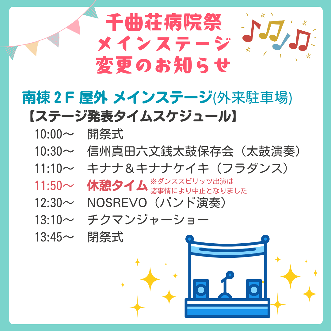 11月30日(日)第19回千曲荘病院祭 ステージ発表変更のお知らせ